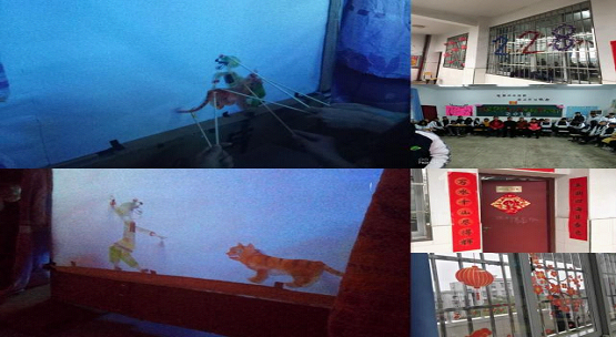 上午师生同乐,各教室张灯结彩,红灯笼,绿窗花,黄气球,小盆栽,洋溢着一派喜气洋洋的气氛。228班用三色彩带在窗户上编出闪亮的班号,236班邀请校领导合影联欢,225班表演了别具一格的皮影戏,223班贴出元旦快乐的大红对联。让人感动的是,学生们为每一位老师,都送上了一支鲜花和一张新年贺卡。老师们也带来了节目,师生一起载歌载舞,其乐融融。