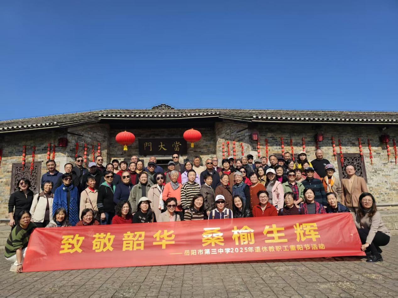 在重阳佳节来临之际,为弘扬中华民族尊老敬老的传统美德,丰富退休教职工的精神文化生活,岳阳市第三中学于10月25日组织退休教职工前往“天下第一村”张谷英村,开展了一场以“致敬韶华,桑榆生辉”为主题的庆祝活动。